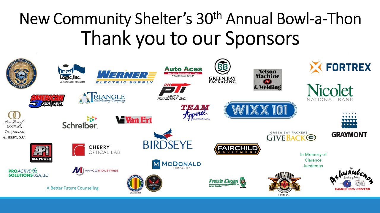 The Bowl-a-thon is also sponsored by a number of local organizations and corporations, including the Vietnam Veterans of America, Schreiber, Green Bay Packaging, Schneider, Graymont, Green Bay Packers, and McDonald Companies.